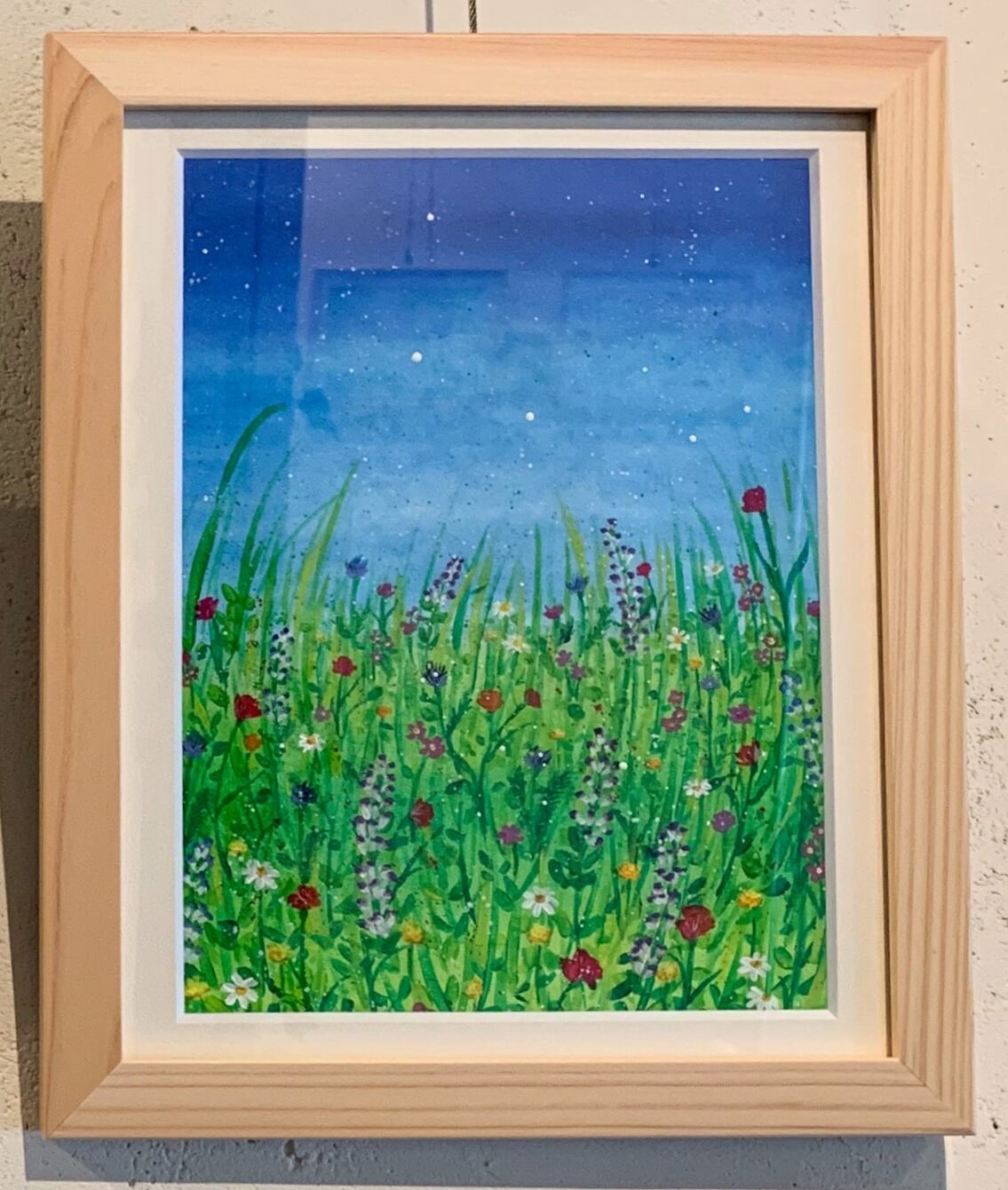 “Night Garden” 夜の花畑 夜空の下の花畑。 良い夢が見られそう? ・アクリル絵の具 ・サイズ 220×270mm (額込み)