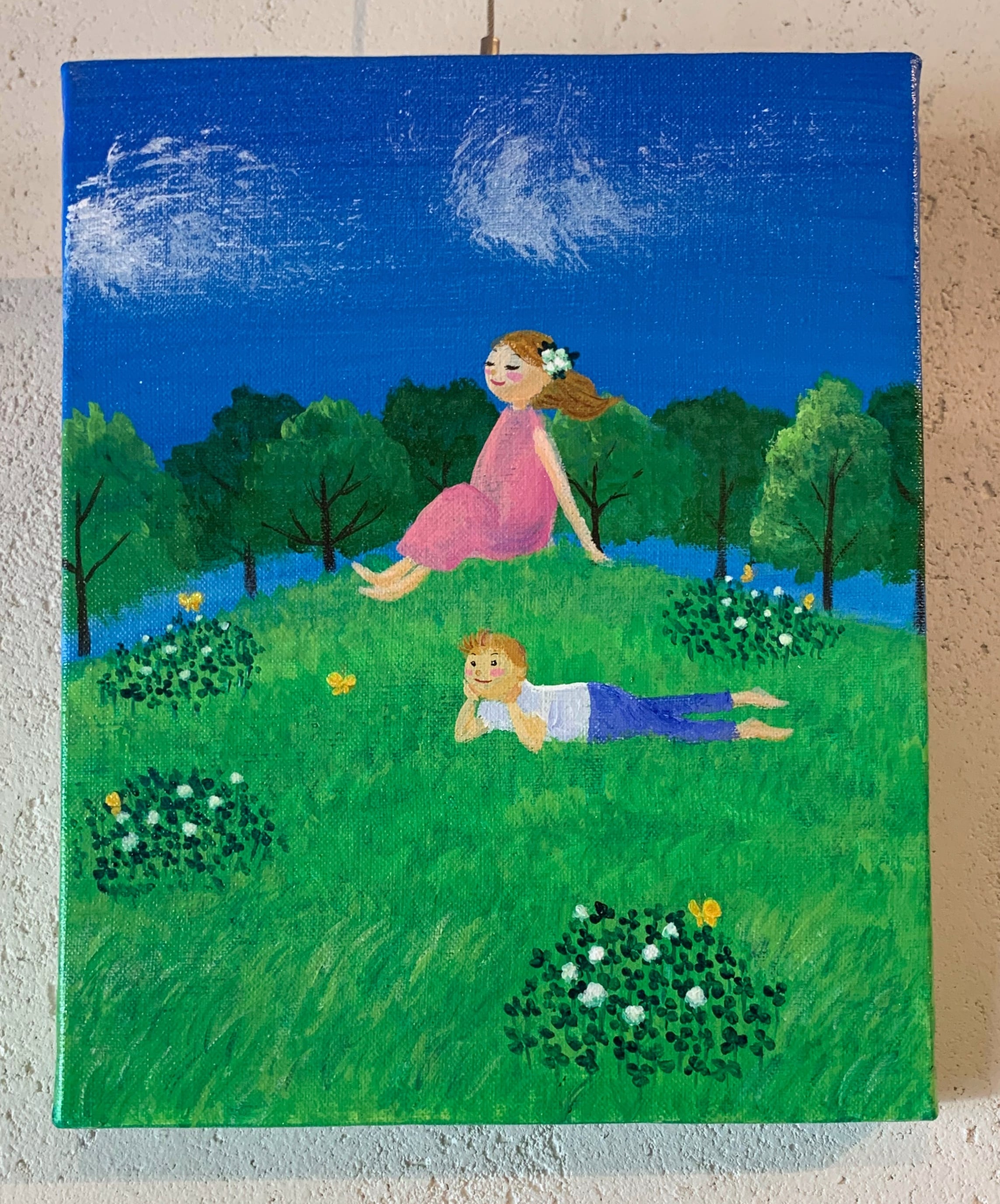爽やかな風が吹く午後、丘の上でのんびりするイメージで描きました。