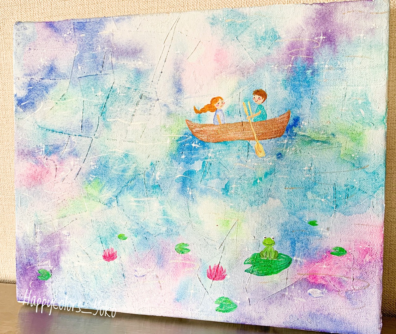 キラキラ★色んな色が映る不思議な池。 キャンバス F3 (273×220mm) 水彩、アクリル絵の具